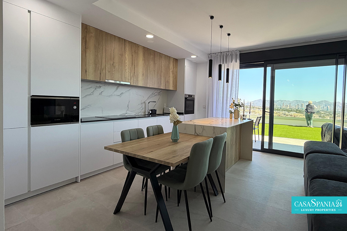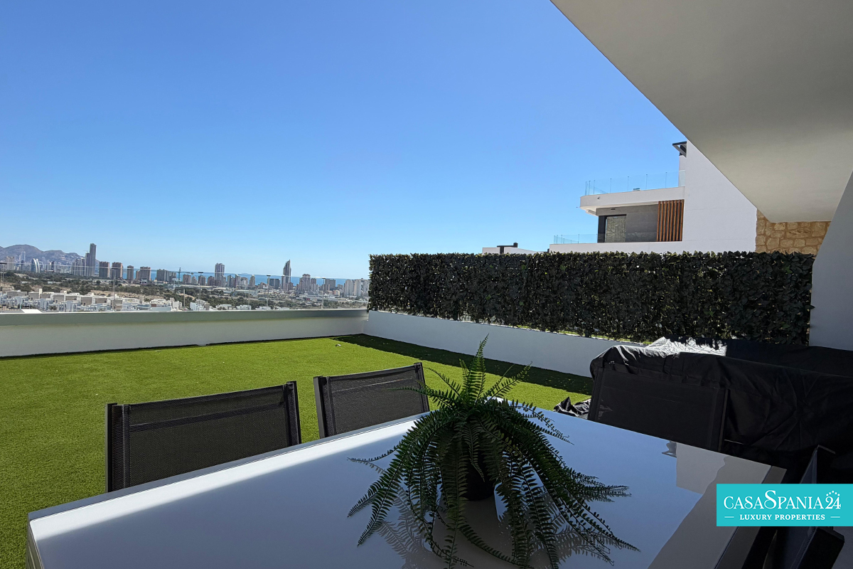 Appartamento con 2 camere da letto e 2 bagni in un nuovo complesso residenziale a Finestrat. Design moderno open space, terrazza privata di 65 m² con vista spettacolare sul mare e sulla città, abbondante luce naturale e accesso a servizi esclusivi come piscine, palestra, spa e giardini paesaggistici.