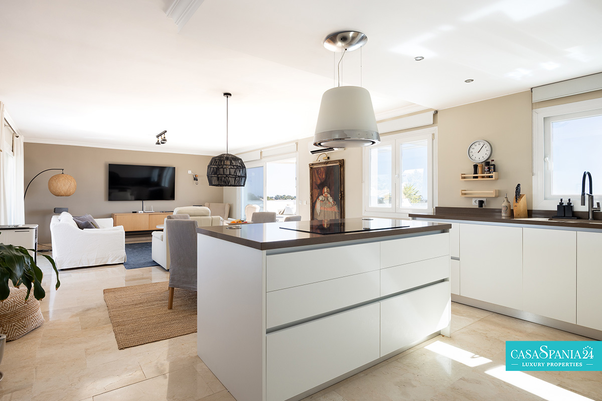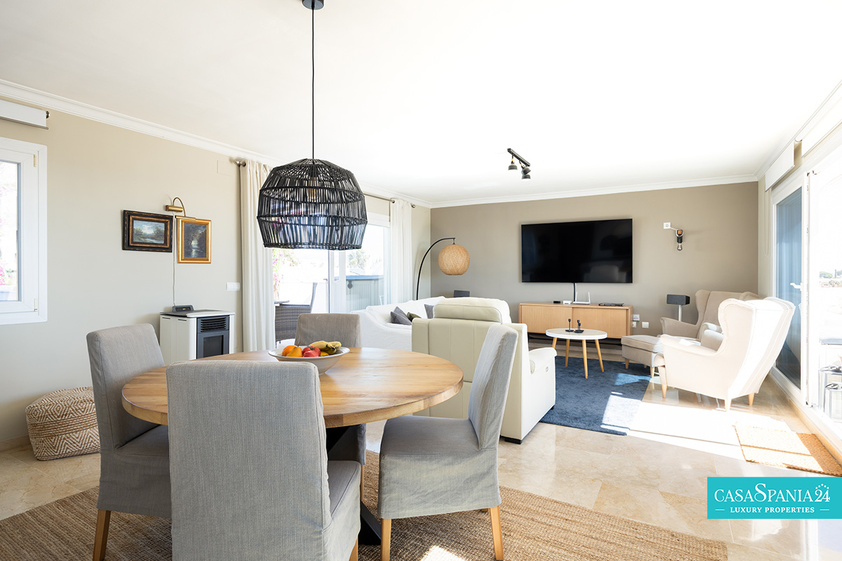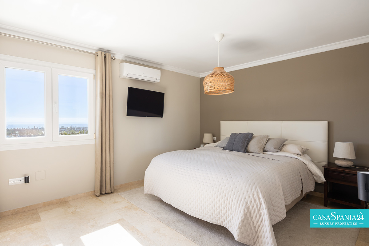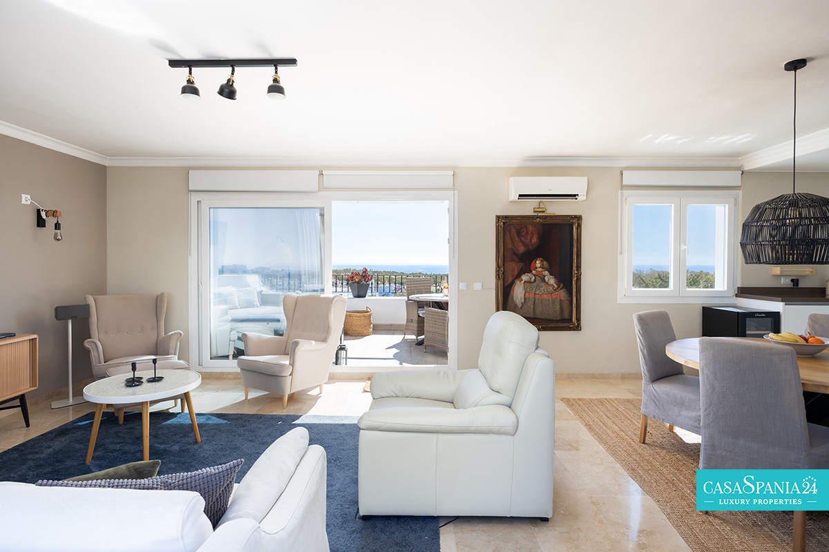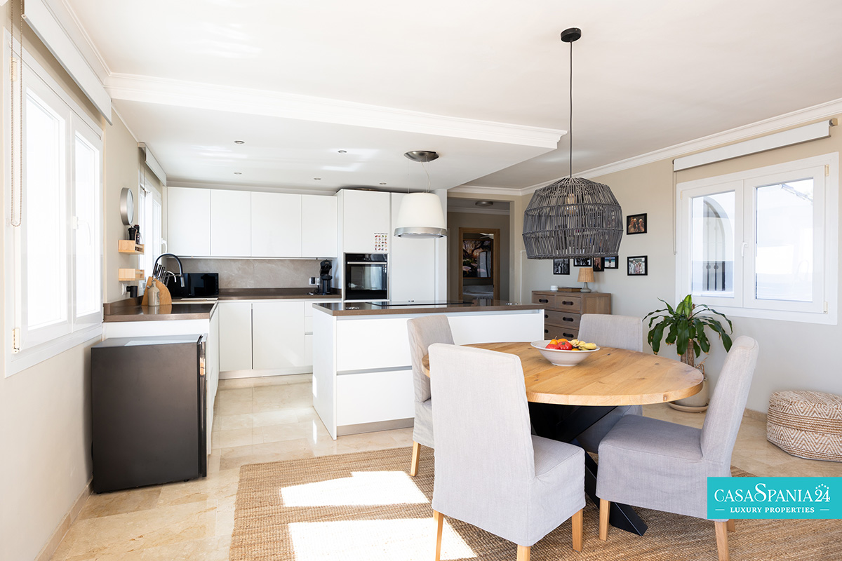 L'ampia terrazza di 44 m², esposta a sud, offre spettacolari viste panoramiche sul Mar Mediterraneo, sulle piscine e sui giardini paesaggistici, nonché sull'iconica montagna La Concha. È il luogo ideale per rilassarsi al sole, trascorrere serate indimenticabili con gli ospiti o ammirare gli splendidi tramonti di Marbella. Al contrario, la terrazza esposta a nord offre uno spazio più fresco e intimo, coperto da un'elegante pergola in legno, perfetto per barbecue e momenti di relax con vista sulle montagne.