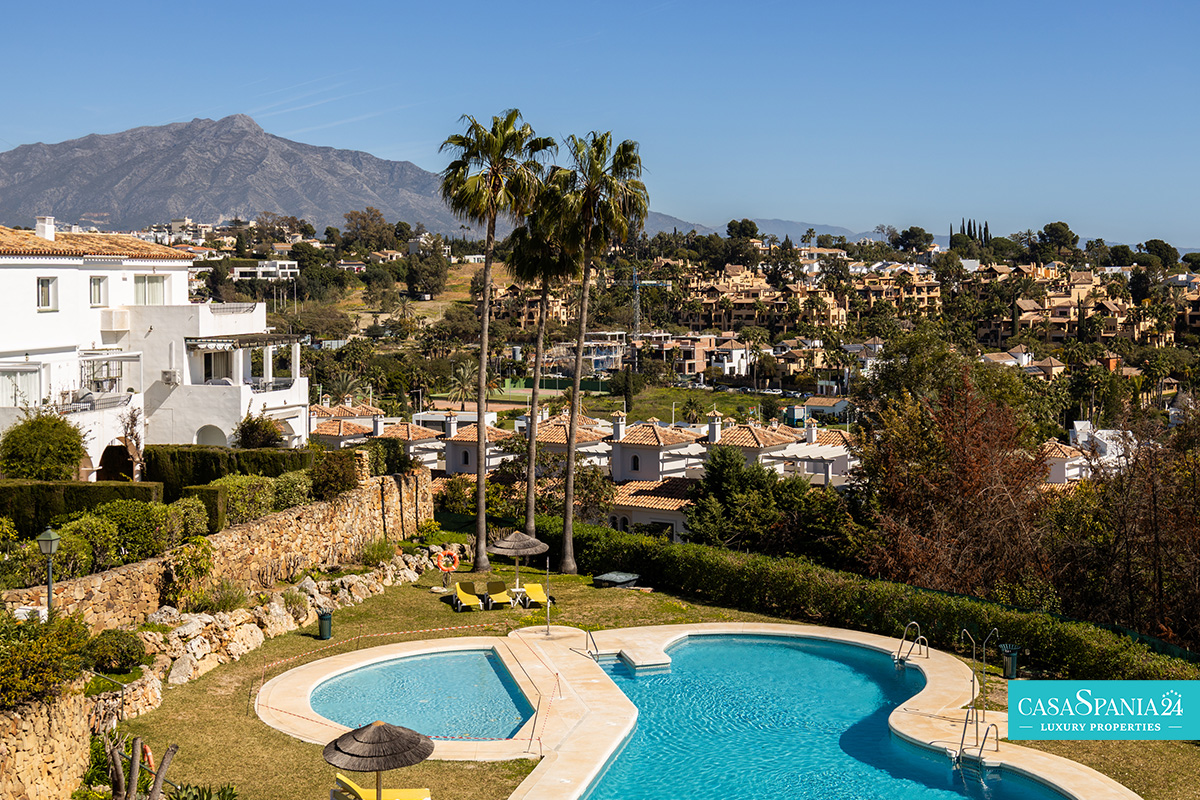 Il complesso residenziale completa l'esperienza con giardini curati, due piscine, parcheggio sotterraneo e posti auto aggiuntivi per gli ospiti. La posizione è eccellente, vicino a campi da golf, ristoranti, negozi, scuole e alla spiaggia, con rapido accesso alla A-7 che collega Estepona, San Pedro, Puerto Banús e Marbella. La proprietà è ideale come residenza principale, casa vacanze o investimento.