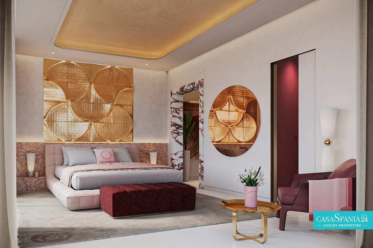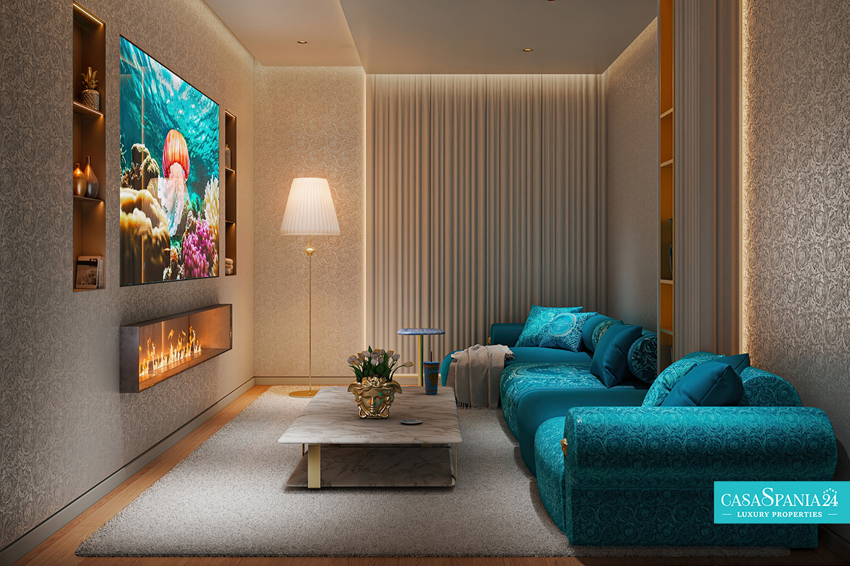 Esposta su un ampio terreno di circa 2.000 m², la villa ridefinisce il concetto di grandezza. Gli interni risplendono grazie ai marmi italiani più pregiati, alle ceramiche Rosenthal realizzate a mano e agli arredi esclusivi con gli iconici motivi Medusa e Greca, simboli della leggendaria estetica Versace. Ogni elemento è stato creato per trasformare la dimora in un'incarnazione unica di eleganza e lusso.