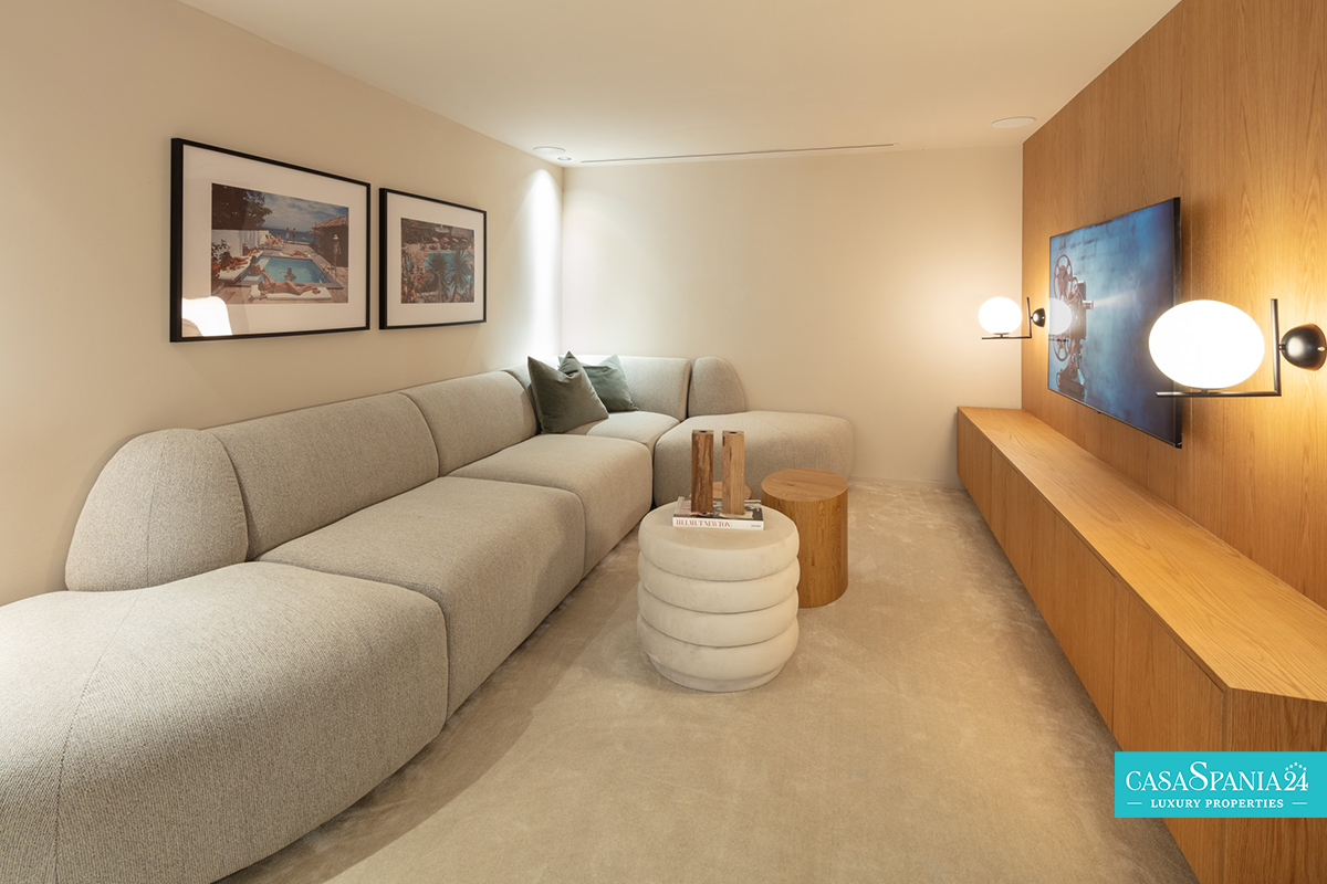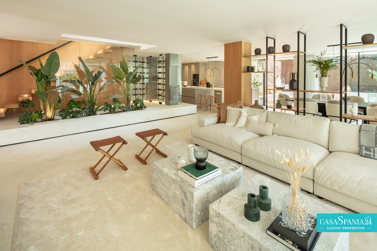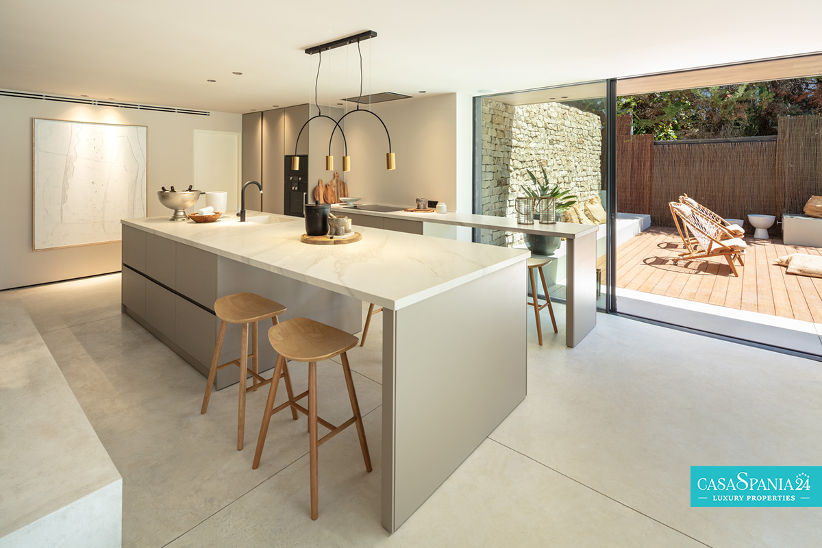 Gli interni sono inondati di luce naturale, grazie alle ampie finestre a tutta altezza, che mettono in risalto la raffinata palette di colori neutri e le finiture di alta qualità. Gli spazi abitativi open space creano un'atmosfera invitante e rilassante, dove la cucina ultramoderna, l'elegante sala da pranzo e il confortevole soggiorno si fondono in un eccezionale design contemporaneo.